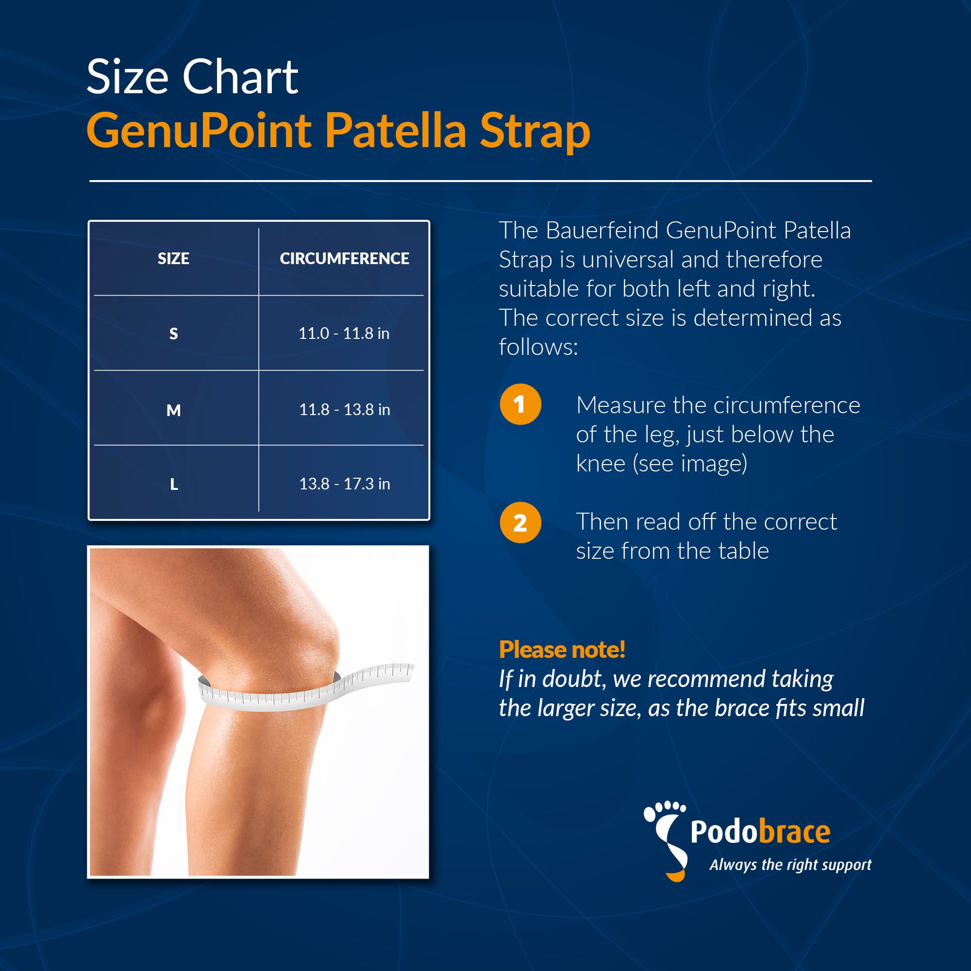 The Bauerfeind GenuPoint provides immediate support and pressure relief on the lower edge of the patella. The anatomically shaped pad with four unique gel pressure points relieves the patella tendon, reducing pain and tension. Ideal for jumpers knee and other tendon-related knee problems.
