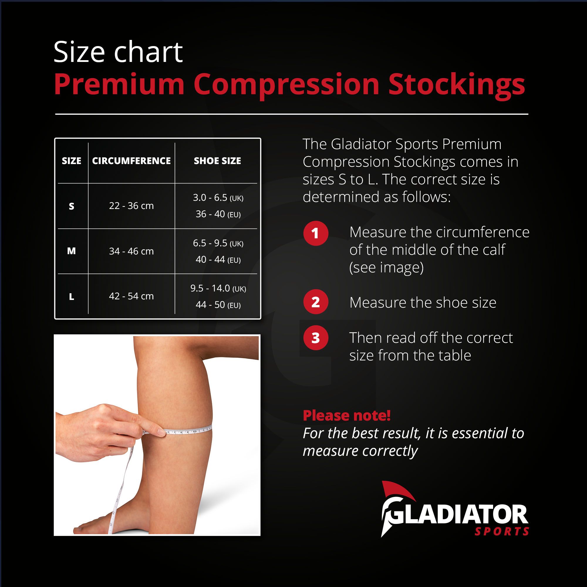 These premium compression stockings have pressure class 2 (23–32 mmHg) for deeper muscle support. The compression stimulates blood circulation and removes waste products more quickly. This means less pain, faster recovery and more energy during and after exercise.