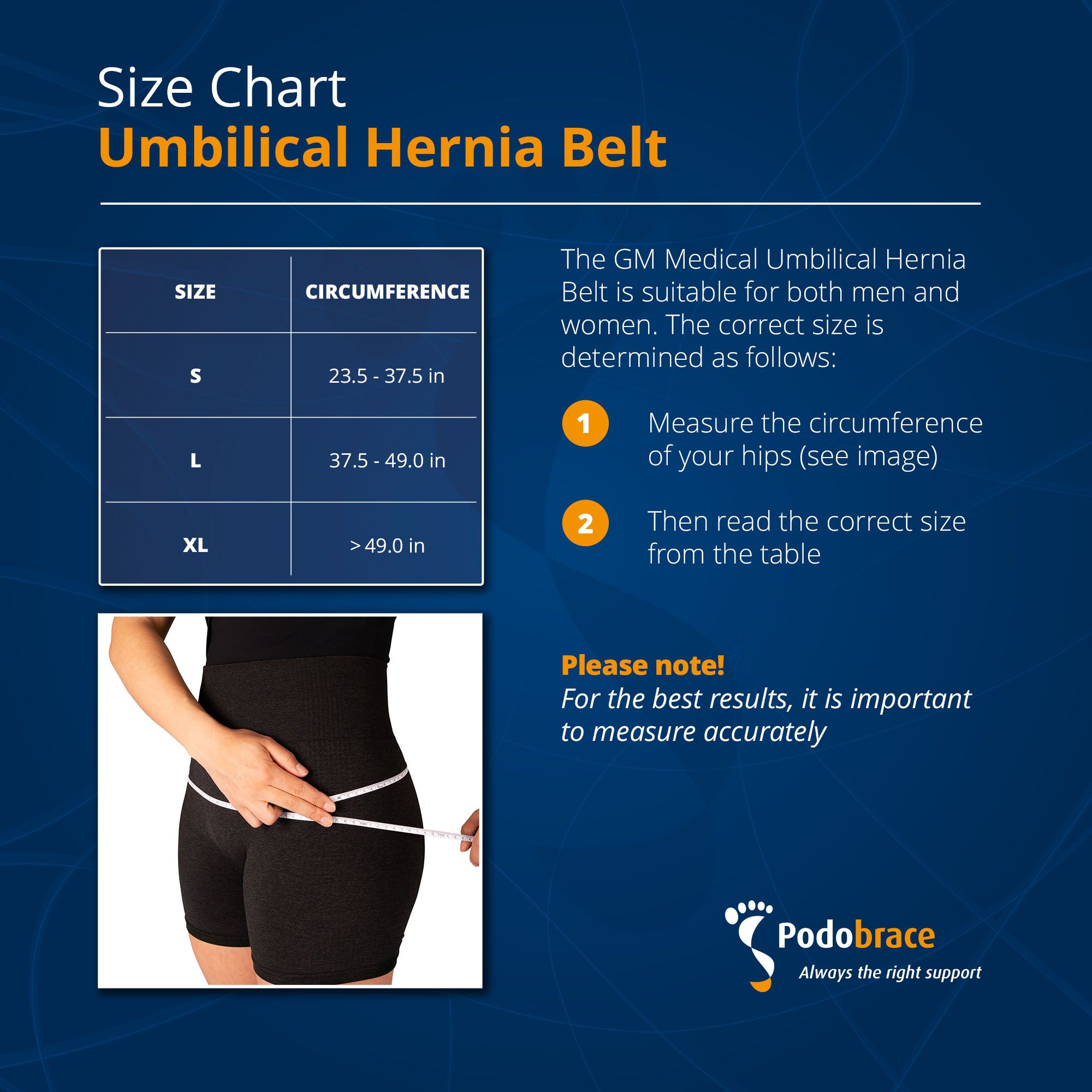 The GM Medical Umbilical Hernia Belt applies controlled pressure to the navel area and helps to prevent or push back the bulge. The integrated pad supports recovery and prevents the hernia from worsening. This umbilical hernia belt can also be worn without the pad, making it suitable for other conditions where pressure is required in the abdominal area.